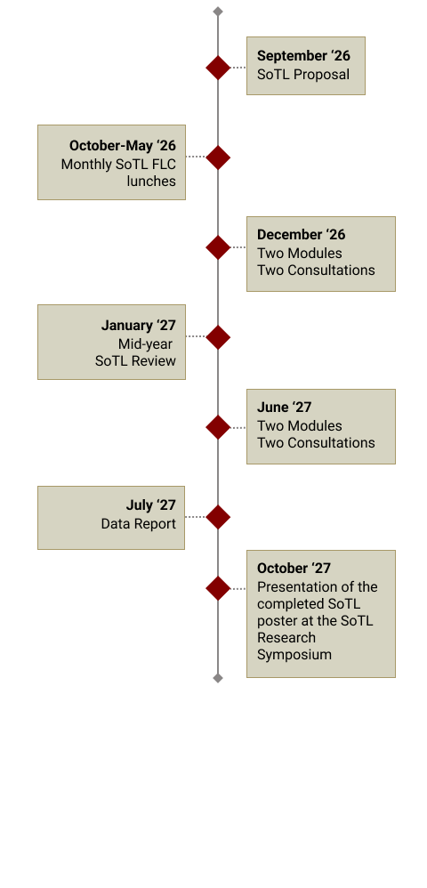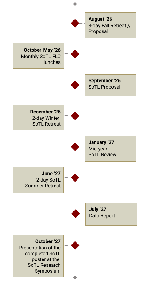 - SoTL Faculty Learning Community (Optional): Faculty participants are invited to attend monthly SoTL FLC meetings throughout the year.